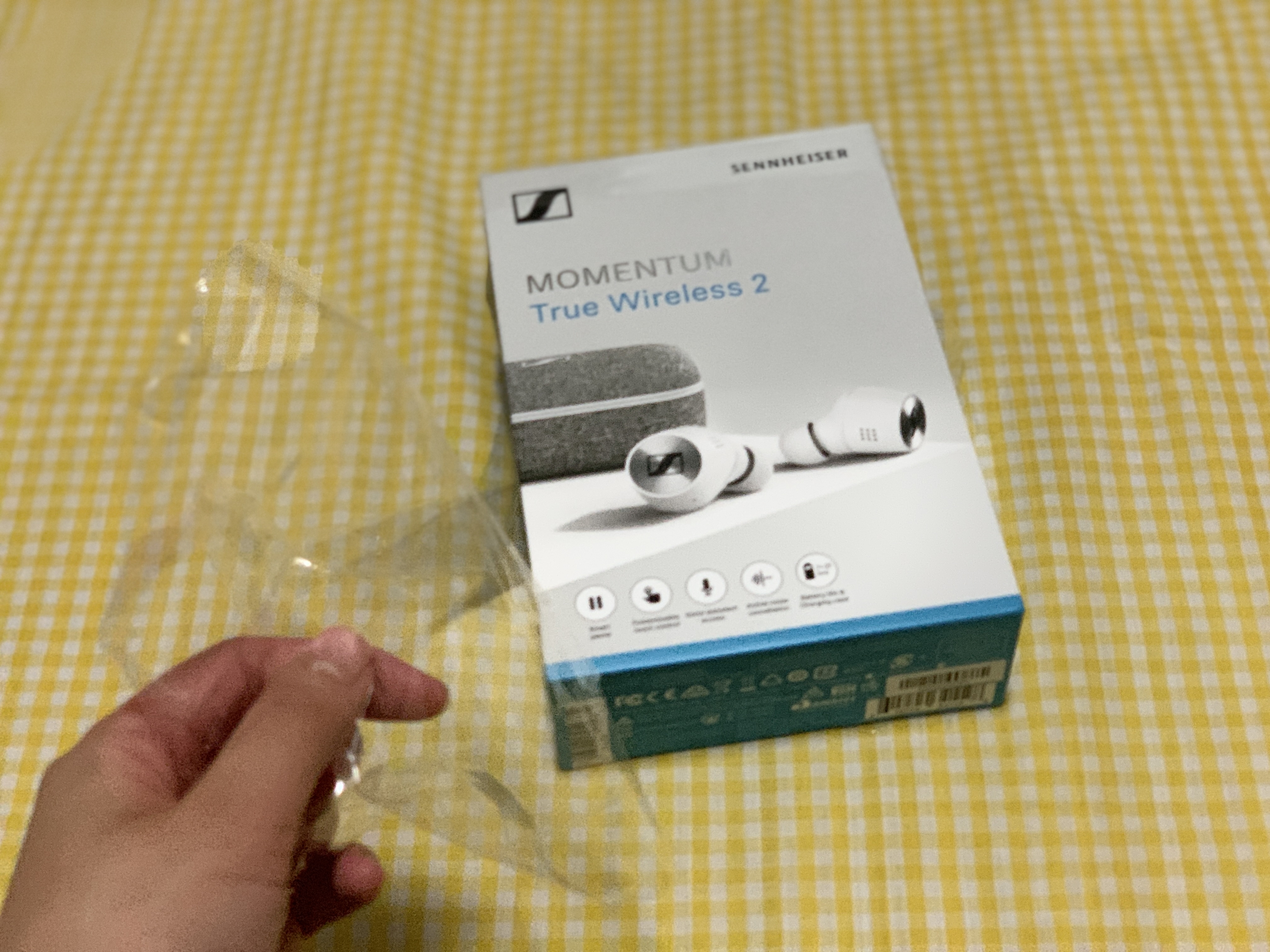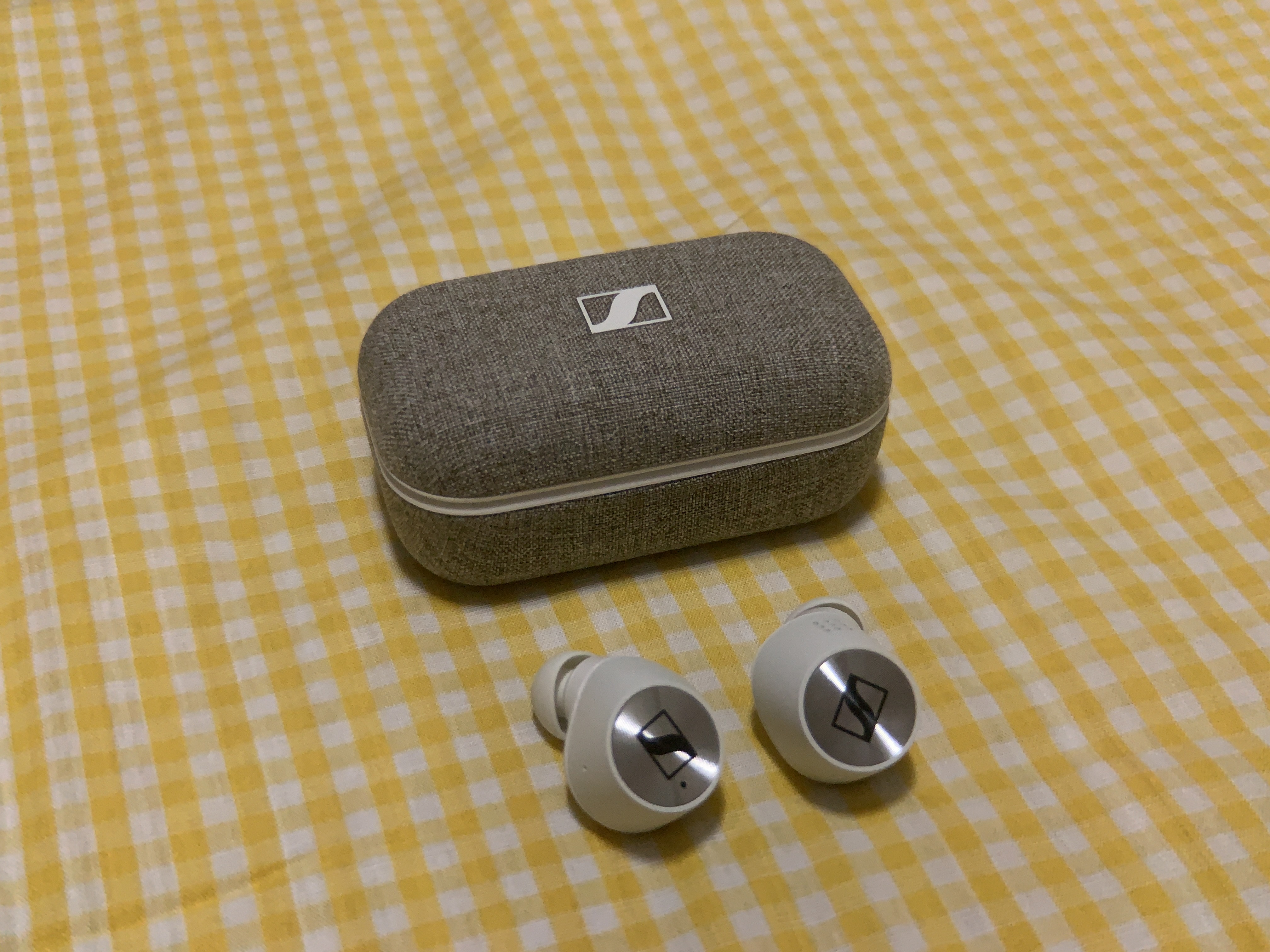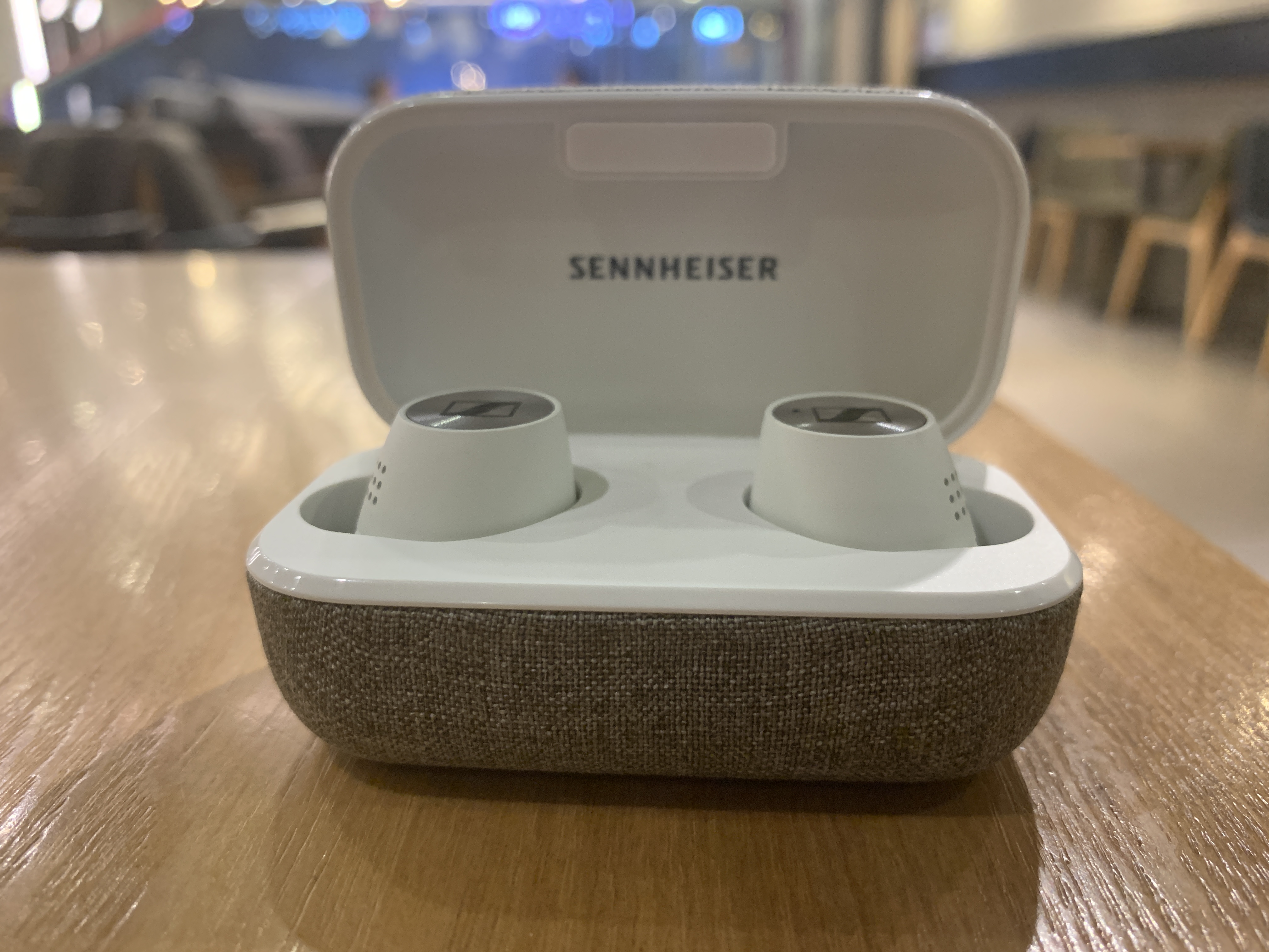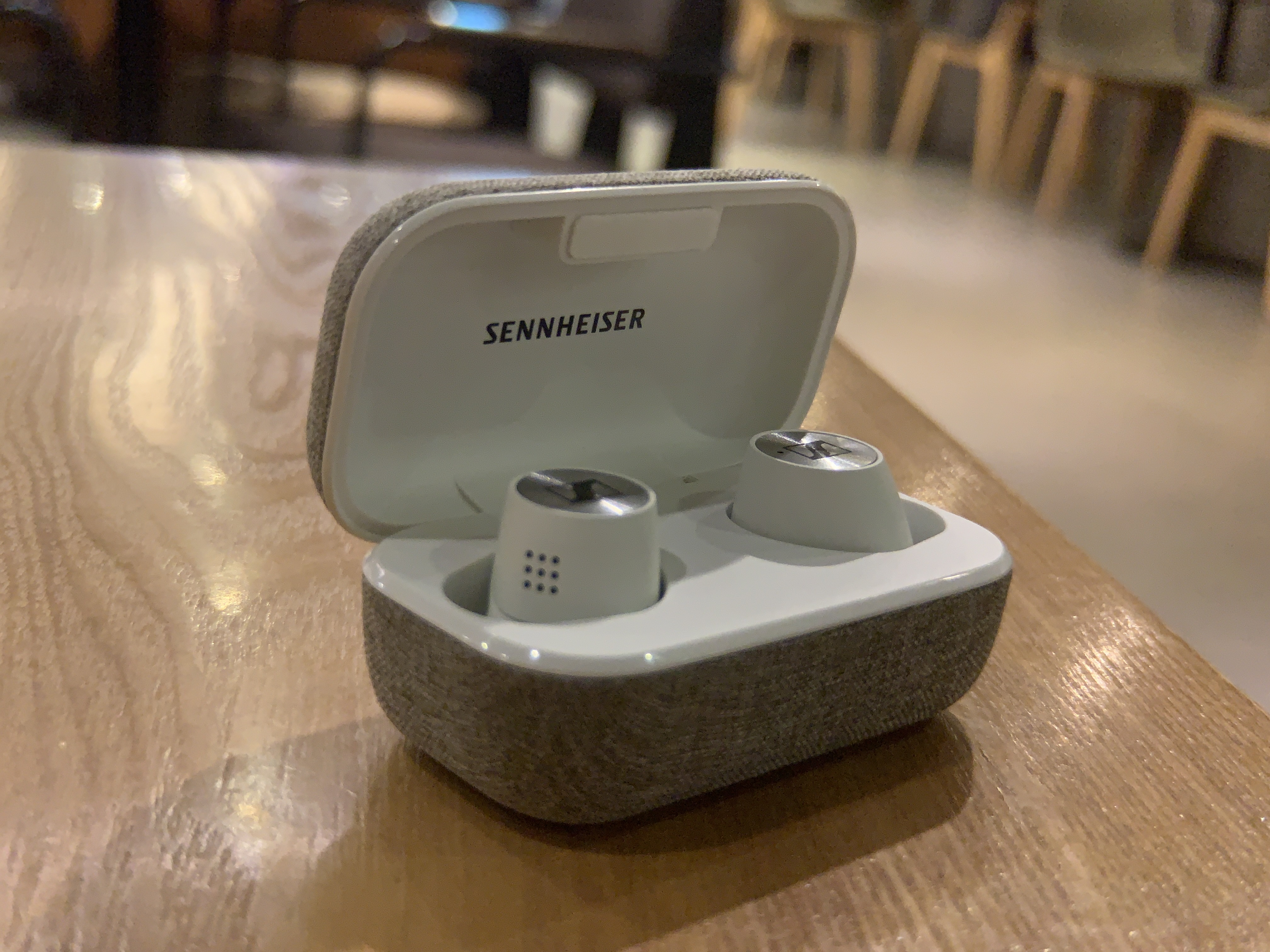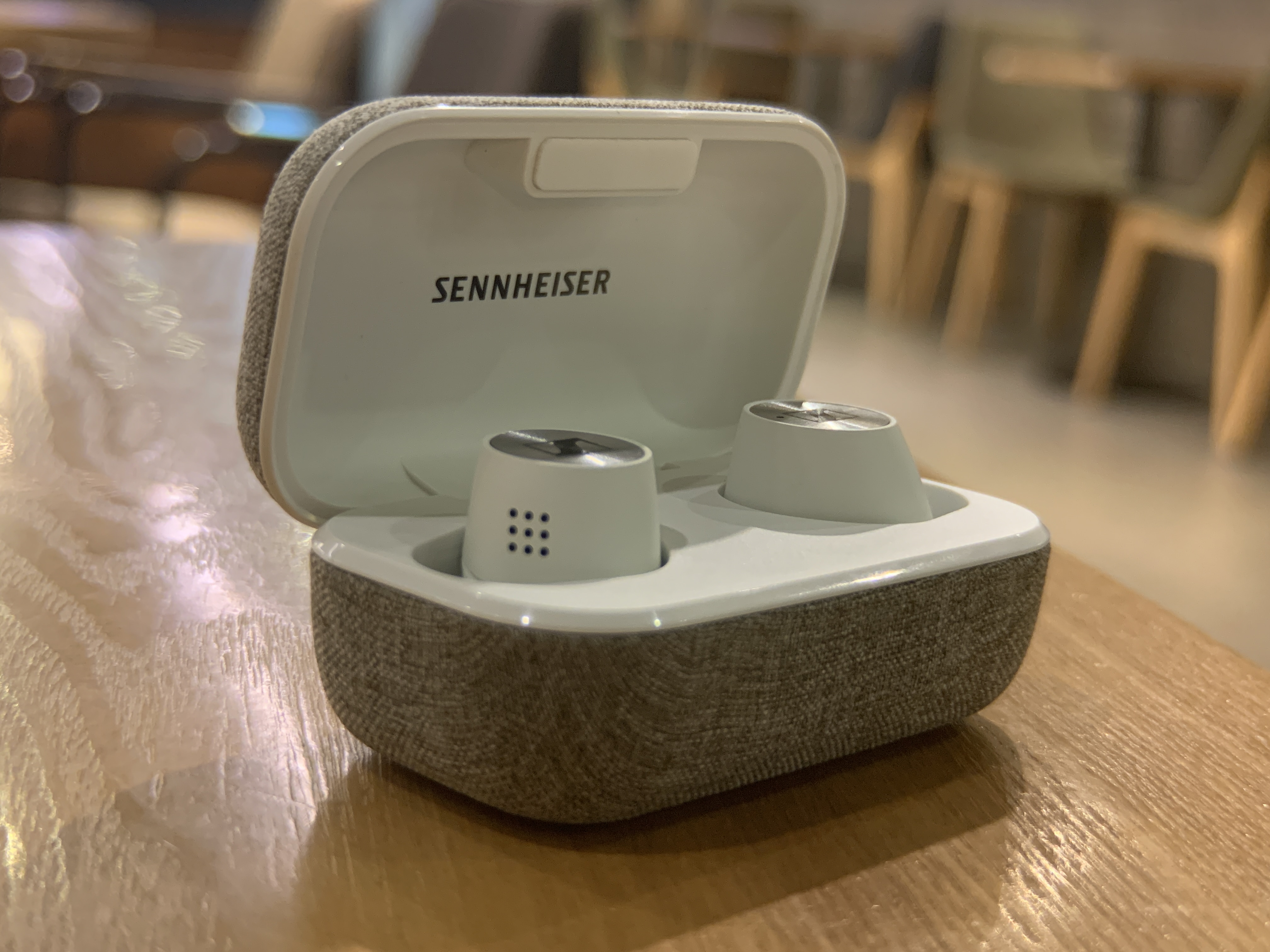정면에서는 젠하이저 로고가 안보이고, 마이크가 보인다.