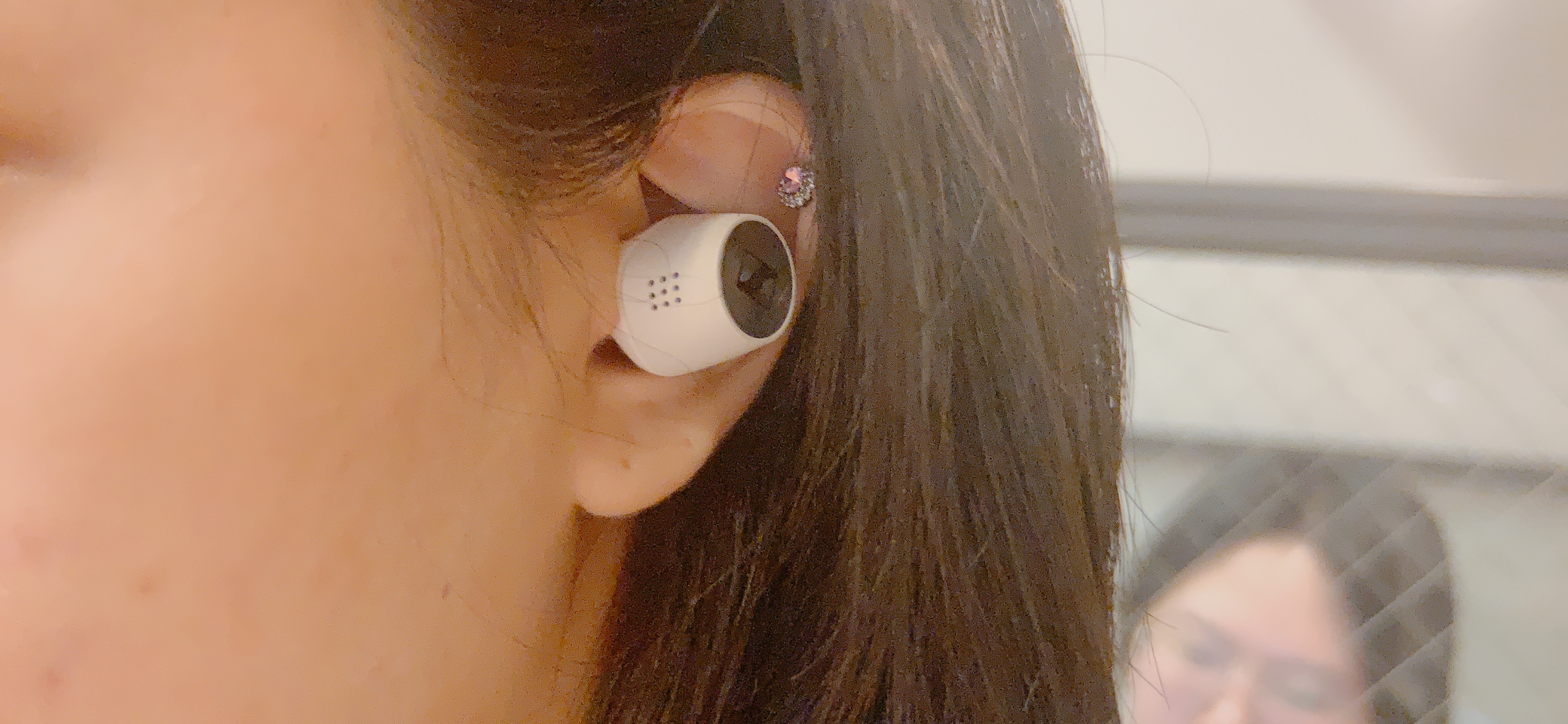 귀에 꼈을때 이정도 크기다. 귀가 작은 편이어서 걱정했는데,